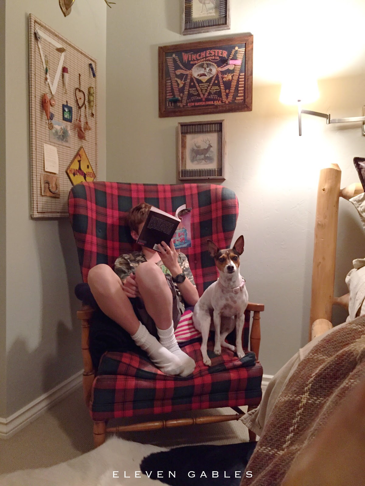 ReplyDeleteKim, Thank you so much! yeah, the thought of a log bed scared me a little. Totally not MY taste. But, my son loves it and I figured if I threw in as much plaid as I could get away with and minimize the "Camouflage" request by painting the walls a greeny-gray, the bed would be okay. The chair--- a gift from my mom. She bought it for her "lake house" then changed the decor. I love it too!